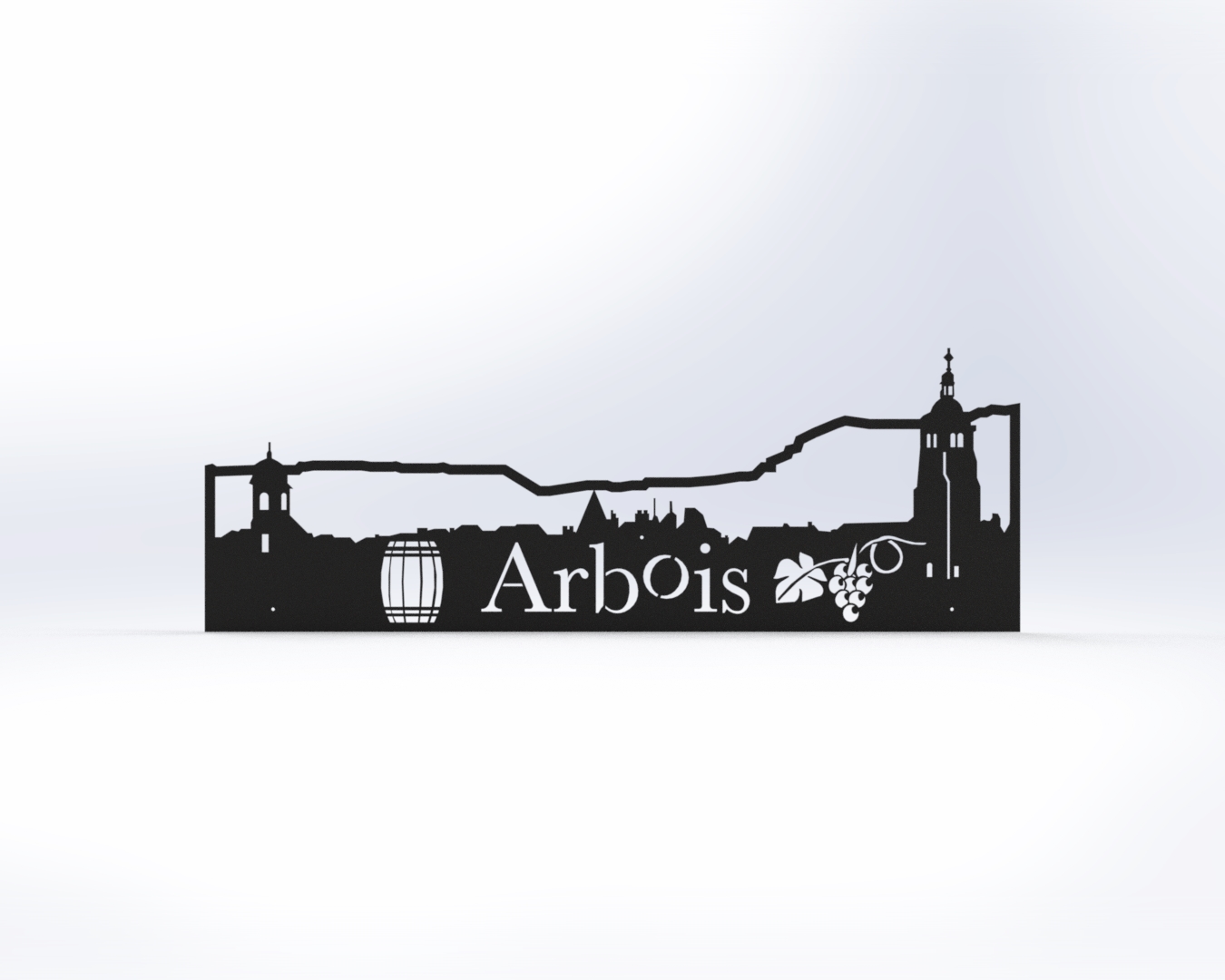 Paysage représentant Arbois et ses monuments emblématiques. 36×12 cm